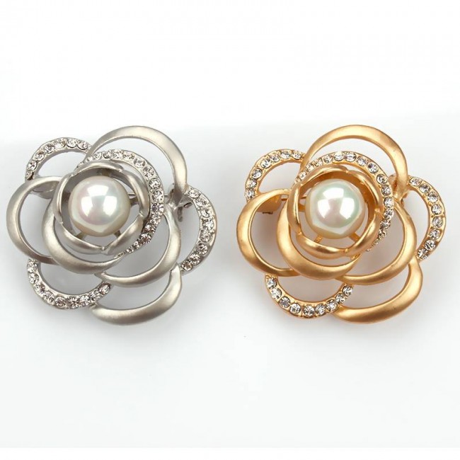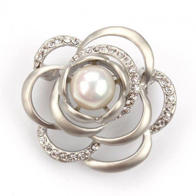 Шикарная брошь с фианитами и жемчугом оптом 754-88