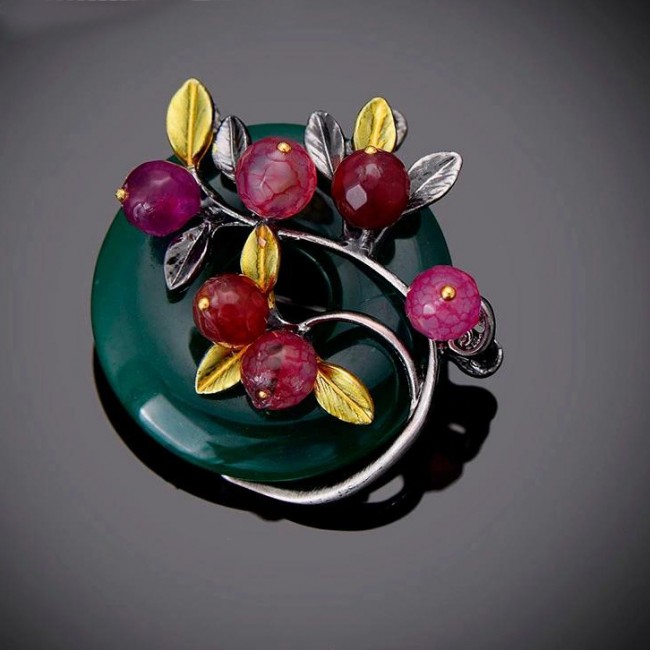 Стильная брошь-8429-зеленый