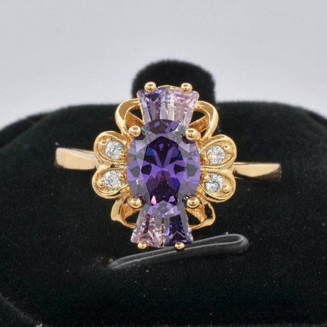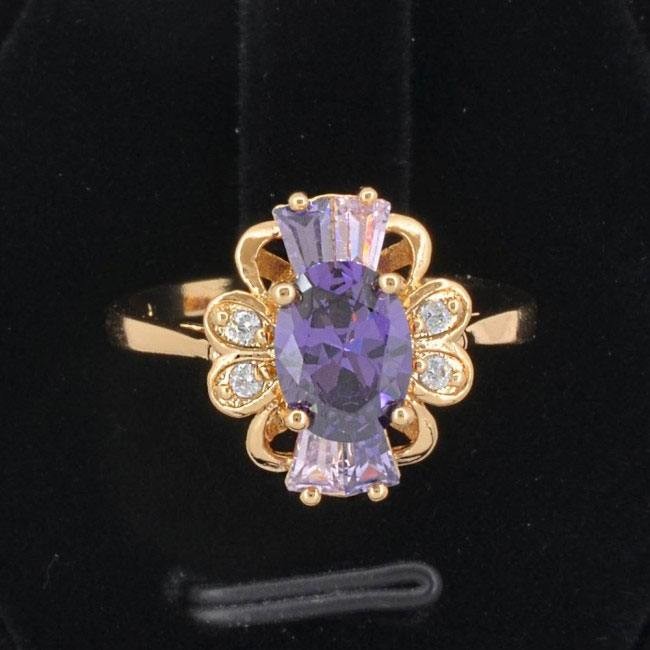 Стильное позолоченное кольцо с фианитами 10-1119-фиолетовый