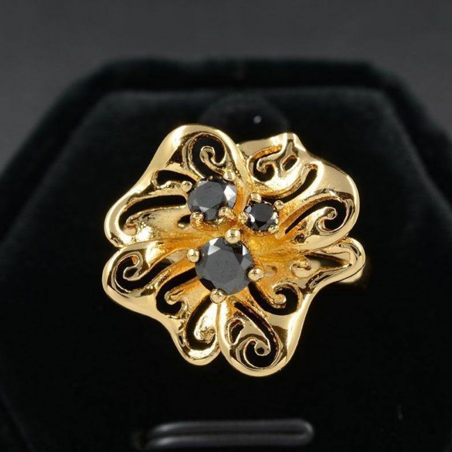 Великолепное кольцо с фианитами в позолоте 11500- черный