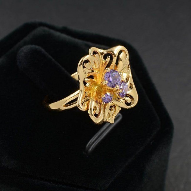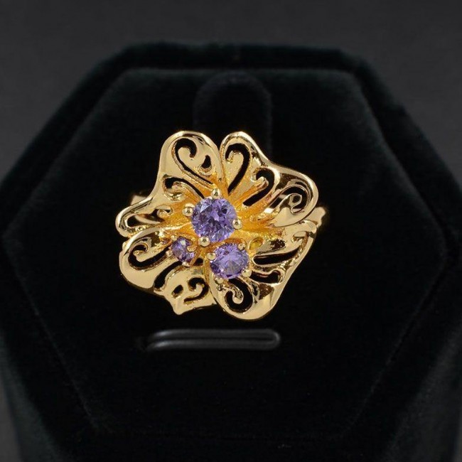 Великолепное кольцо с фианитами в позолоте 11500- фиолетовый
