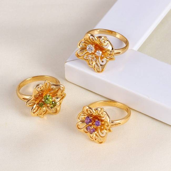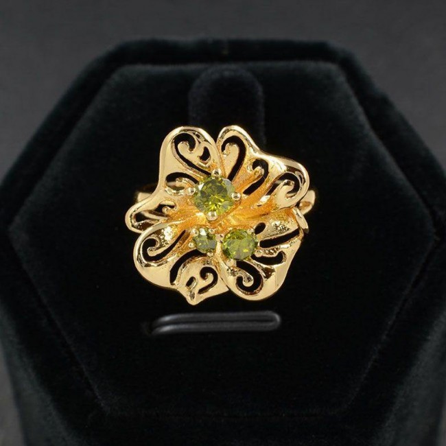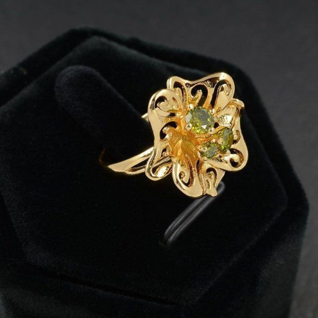 Великолепное кольцо с фианитами в позолоте 11500- зеленый