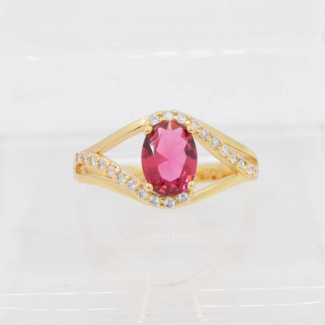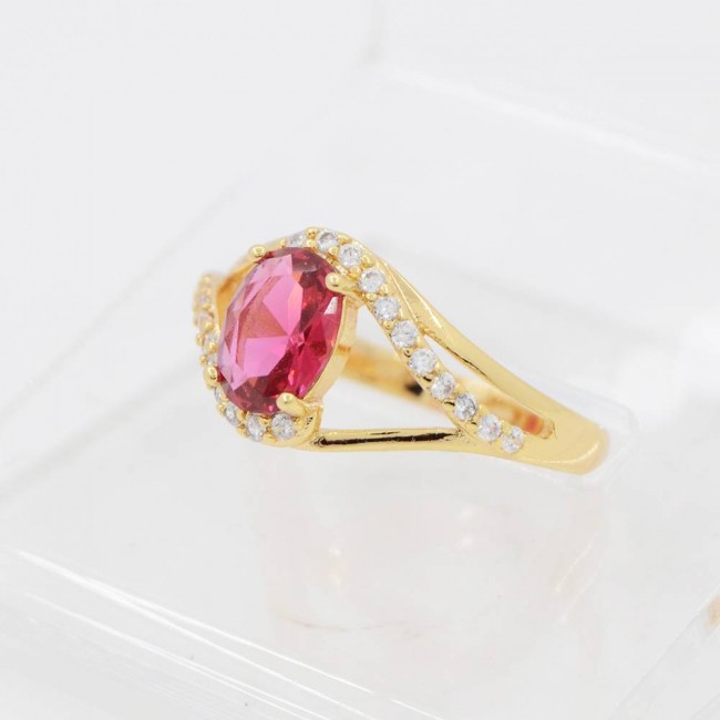 Восхитительное кольцо с фианитами ХР 10-1070-красный корунд