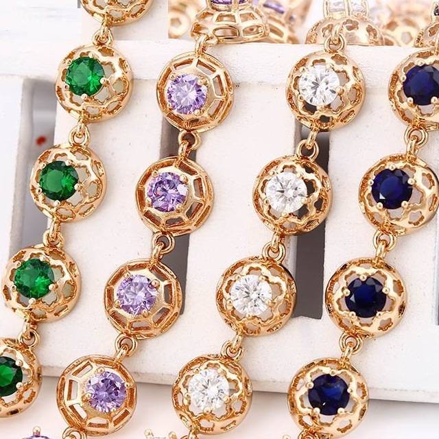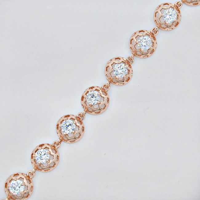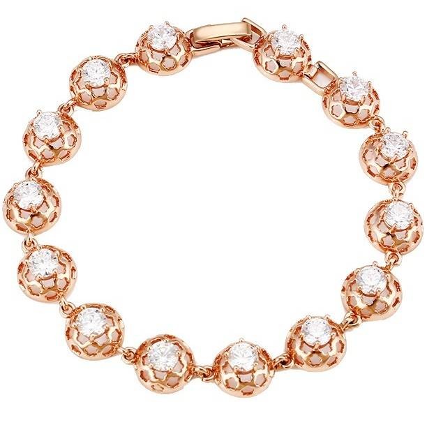 Браслет с белыми фианитами оптом, натуральная позолота модель 73252