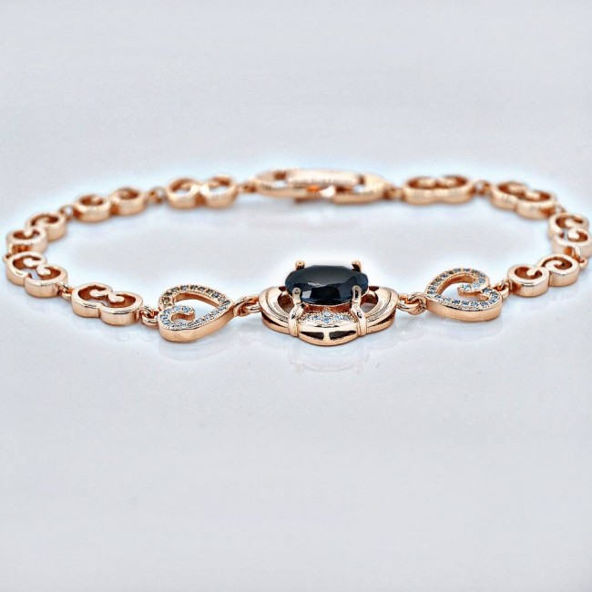 Браслет с крупным черным фианитом и мелкими прозрачными фианитами