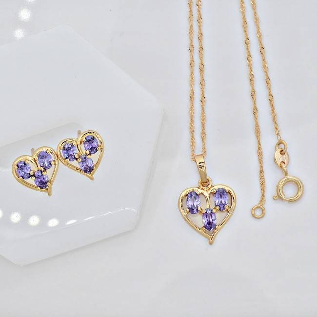Комплект с фиолетовыми фианитами оптом, натуральная позолота модель 60591