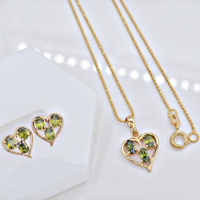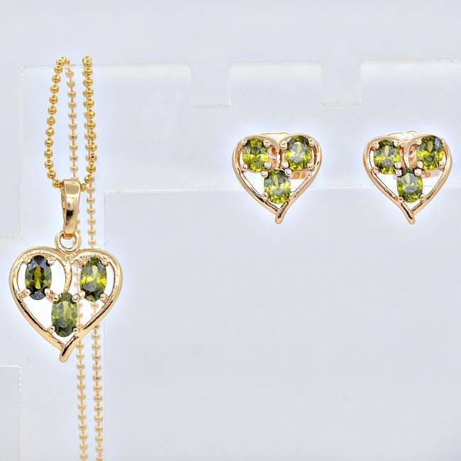 Комплект с зелеными фианитами оптом, натуральная позолота модель 60591