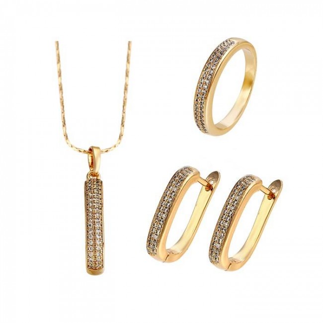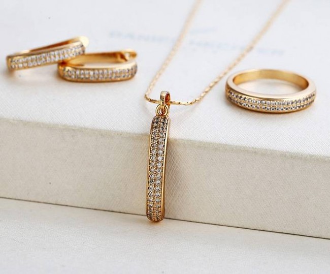 Комплект с серьгами, кулоном и кольцом оптом, натуральная позолота модель 62989