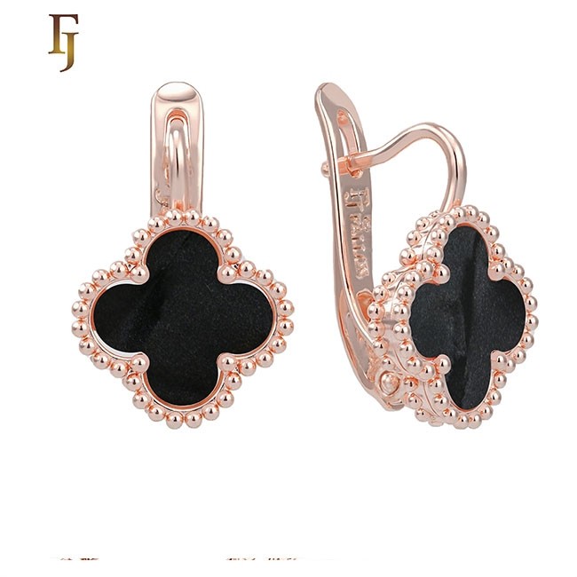 Позолочені сережки у стилі Ван Кліф Fallon 82202888-чорний перламутр