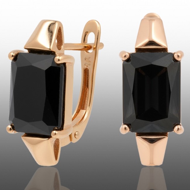 Позолочені сережки Xuping 24661-чорний фіаніт