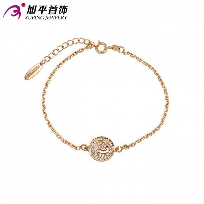 Тонкий золотой браслет на руку с якорным плетением. Украшение смотрится на руке изящно, легко и в тоже время привлекает внимание оригинальной подвеской в виде спирали с фианитами.