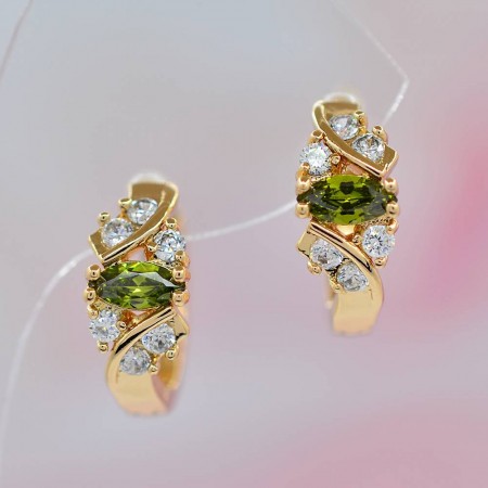 Серьги с белыми и зеленым фианитами