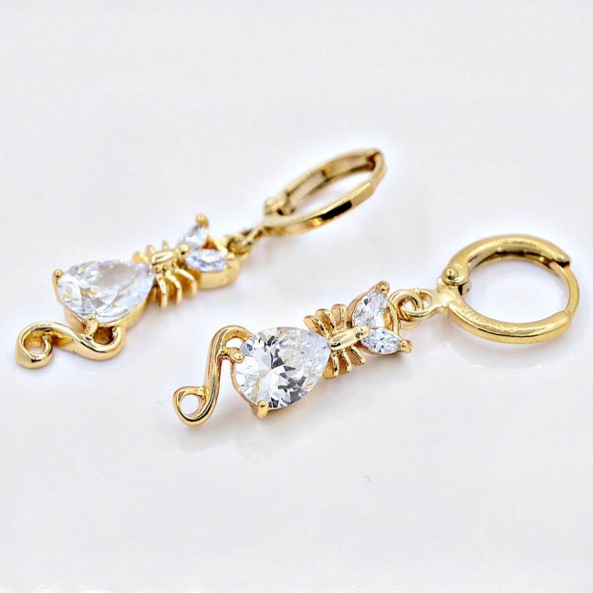 Сережки в форме кошечек с белыми фианитом оптом, модель 25775