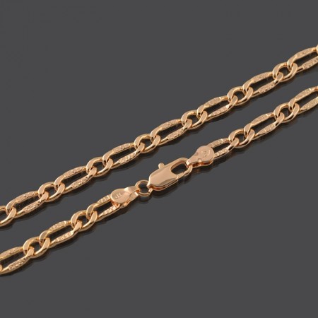 Позолоченная цепочка комбинированного плетения, имея универсальное плетение подойдет как для мужчин так и для женщин. Средняя длинна изделия, позволяет сочетать ее с кулонами или, при необходимости, не выделять ее другими аксессуарами.