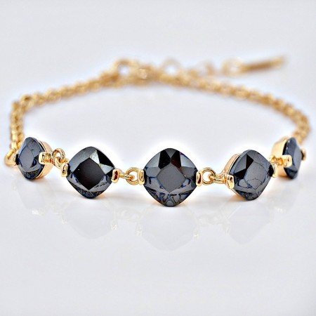 Браслет с черными фианитами оптом, натуральная позолота модель 71255
