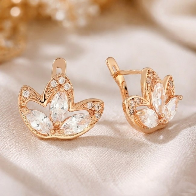 Елегантна і стримана прикраса ідеально підійде для тих, хто цінує класику. Поєднання фіаніту з позолотою в колір червоного золота не залишить байдужою жодну модницю. Чудова модель щодня стане незабутнім подарунком до будь-якого свята.