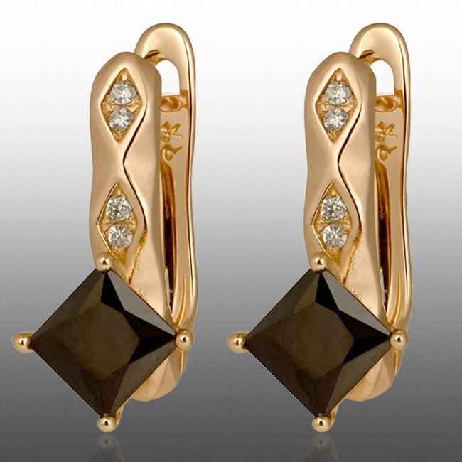 Позолочені сережки Xuping 24304-чорний фіаніт