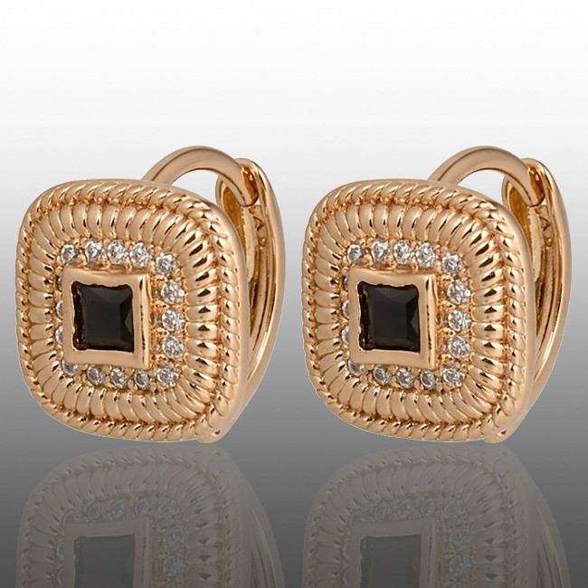 Позолочені сережки Xuping 24365-чорний фіаніт