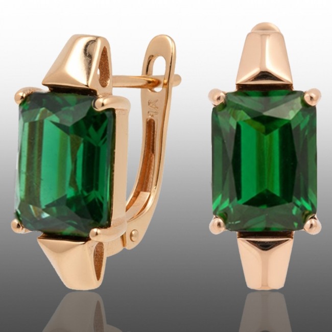 Позолочені сережки Xuping 24661-зелений фіаніт