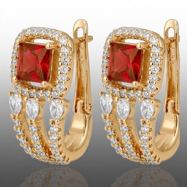 Позолочені сережки Xuping 24777-червоний фіаніт is available for purchase in increments of 1