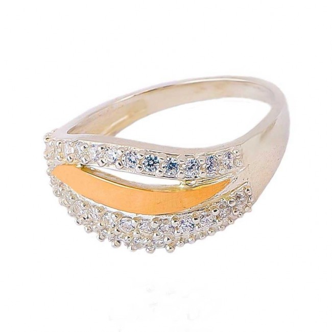 Кольцо выполнено из серебра 925 пробы с напаянными пластинами золота 375 пробы, вставки фианит