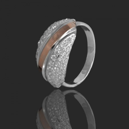 Кольцо выполнено из серебра 925 пробы с напаянными пластинами золота 375 пробы, вставки циркон