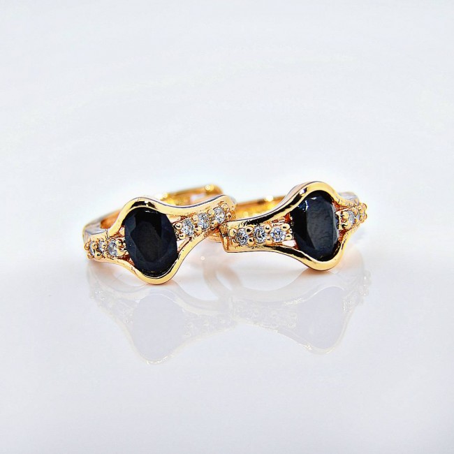 Сережки с черным фианитом и искусственными бриллиантами оптом, модель 24667