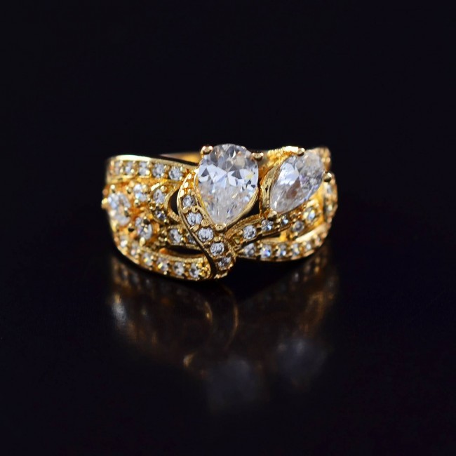 Великолепное позолоченное кольцо с фианитами 10-1120