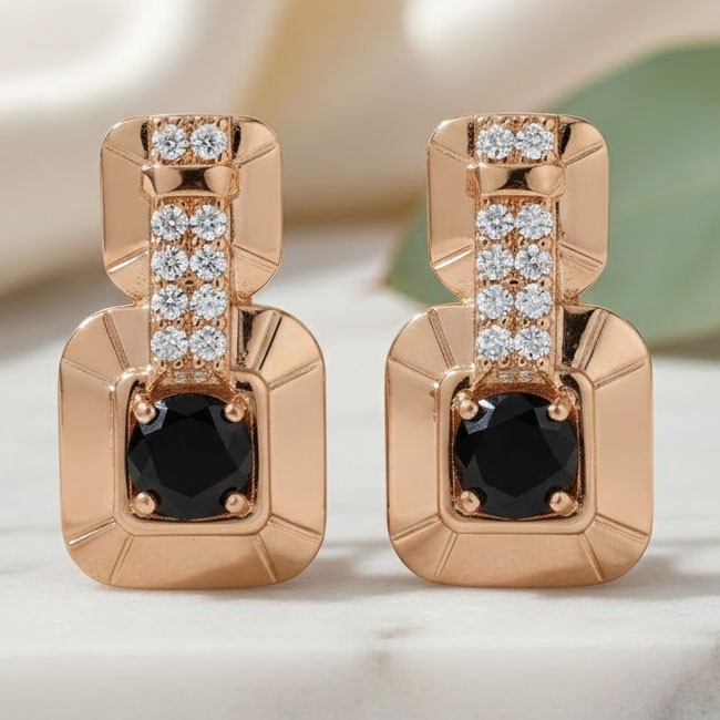 Позолочені сережки Xuping 24051-чоринй фіаніт is available for purchase in increments of 1